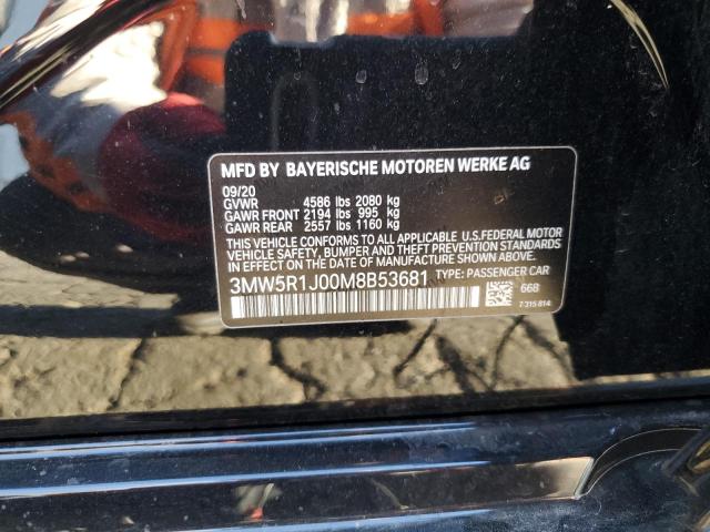 This 2021 BMW 3 SERIES (BLACK) comes from a major insurance auction in the USA or Canada. All information on this page is linked to the vehicle’s VIN (3MW5R1J00M8B53681), which helps confirm where the car was listed and what condition it was in at the time of sale.