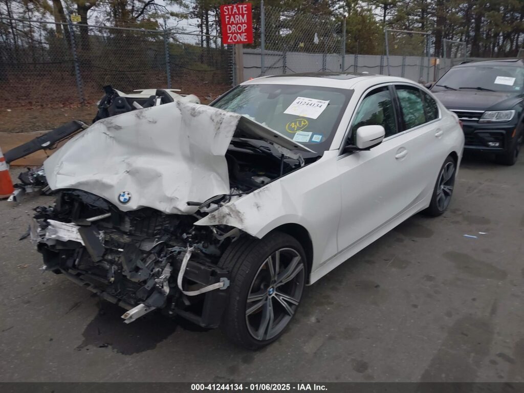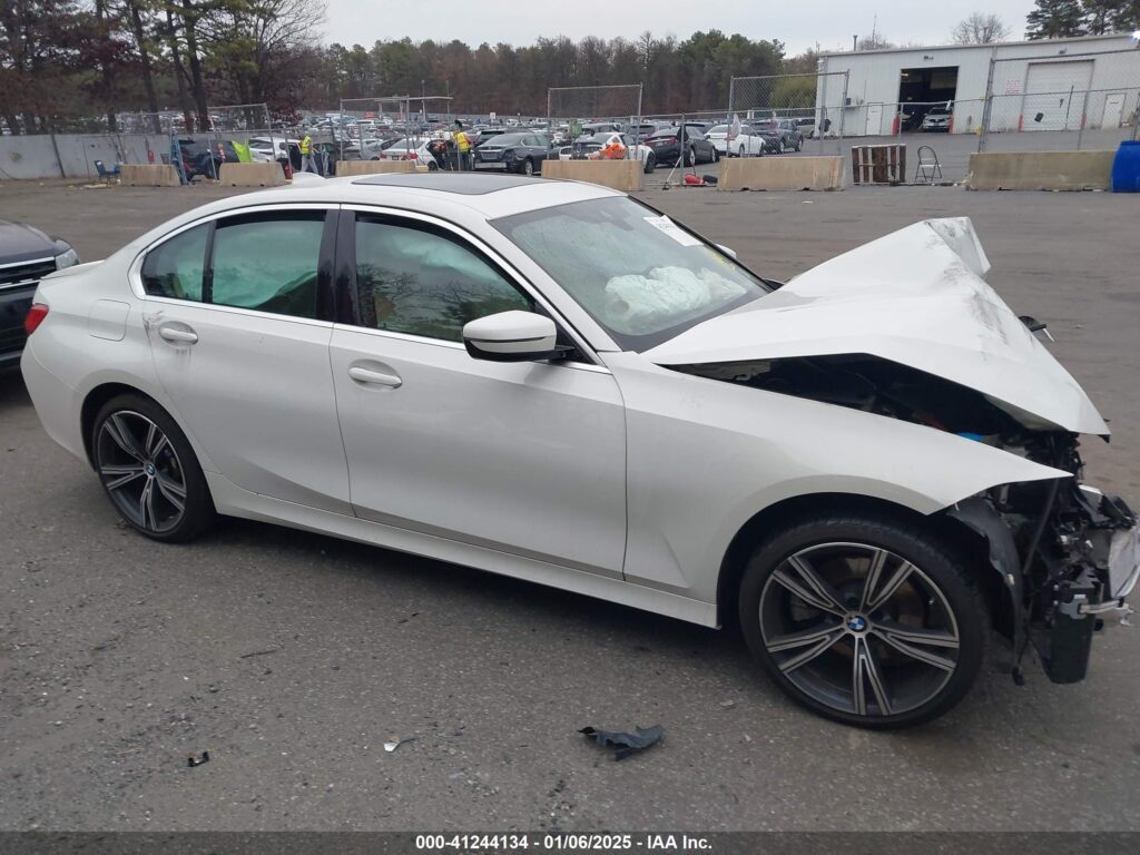This 2021 BMW 3 Series (White) is equipped with an engine designed to balance performance and efficiency. According to the auction listing, the vehicle had 1 miles at the time of sale.