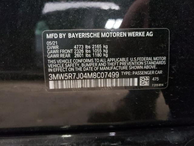 This 2021 BMW 3 Series (Black) comes from a major insurance auction in the USA or Canada. All information on this page is linked to the vehicle’s VIN (3MW5R7J04M8C07499), which helps confirm where the car was listed and what condition it was in at the time of sale.