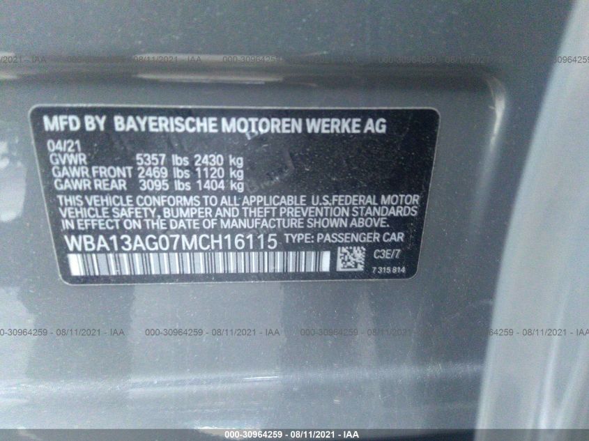 2021 BMW 5 SERIES – WBA13AG07MCH16115
