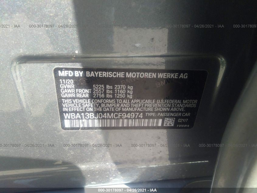 VIN NumberWBA13BJ04MCF94974