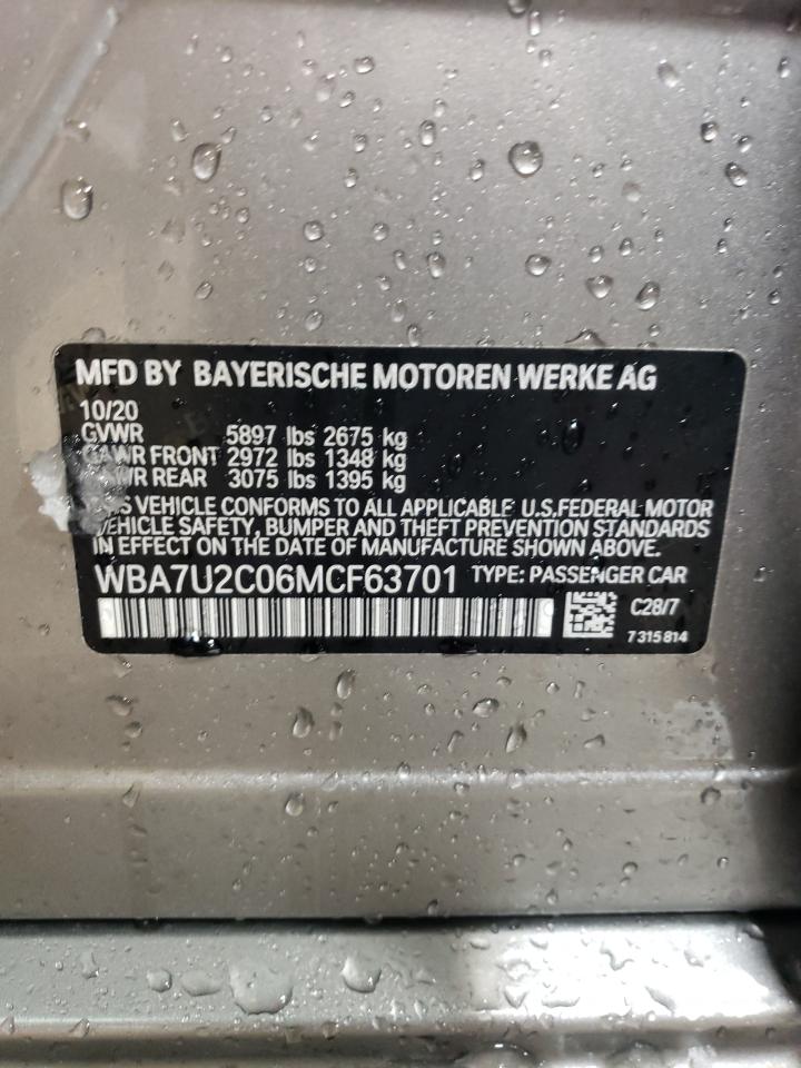This 2021 BMW 7 Series (Silver) comes from a major insurance auction in the USA or Canada. All information on this page is linked to the vehicle’s VIN (WBA7U2C06MCF63701), which helps confirm where the car was listed and what condition it was in at the time of sale.