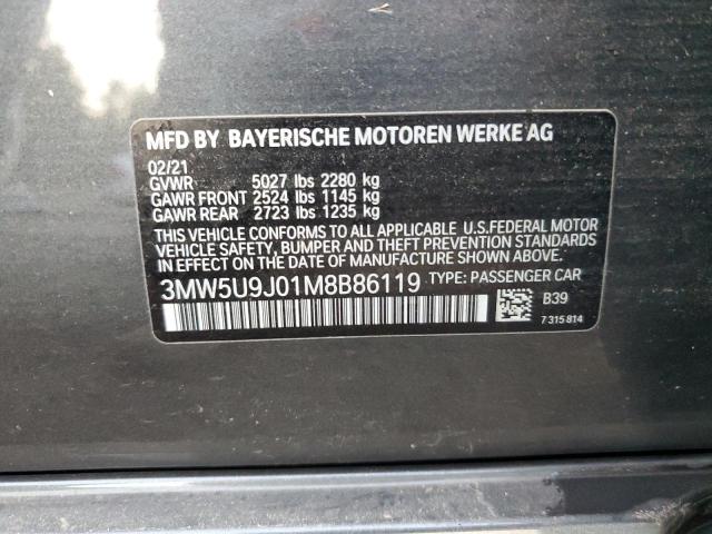 This 2021 BMW M3 (GRAY) comes from a major insurance auction in the USA or Canada. All information on this page is linked to the vehicle’s VIN (3MW5U9J01M8B86119), which helps confirm where the car was listed and what condition it was in at the time of sale.