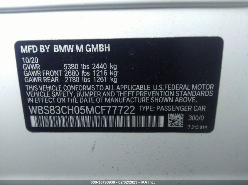 Home » Inventory » BMW » 2021 BMW M5 – WBS83CH05MCF77722