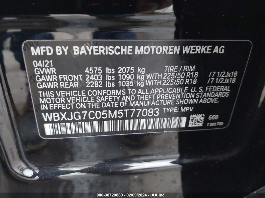 This 2021 BMW X1 (Black) comes from a major insurance auction in the USA or Canada. All information on this page is linked to the vehicle’s VIN (WBXJG7C05M5T77083), which helps confirm where the car was listed and what condition it was in at the time of sale.