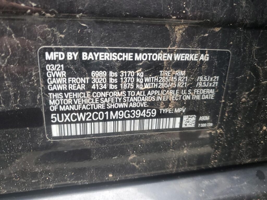 This 2021 BMW X7 (BLACK) comes from a major insurance auction in the USA or Canada. All information on this page is linked to the vehicle’s VIN (5UXCW2C01M9G39459), which helps confirm where the car was listed and what condition it was in at the time of sale.