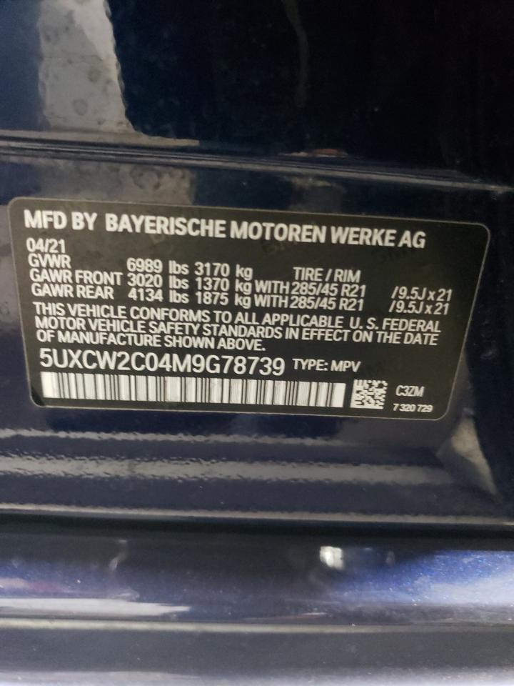 This 2021 BMW X7 (BLUE) comes from a major insurance auction in the USA or Canada. All information on this page is linked to the vehicle’s VIN (5UXCW2C04M9G78739), which helps confirm where the car was listed and what condition it was in at the time of sale.