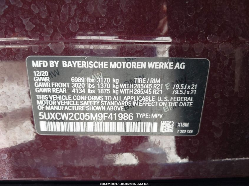 This 2021 BMW X7 (Unknown Color) comes from a major insurance auction in the USA or Canada. All information on this page is linked to the vehicle’s VIN (5UXCW2C05M9F41986), which helps confirm where the car was listed and what condition it was in at the time of sale.