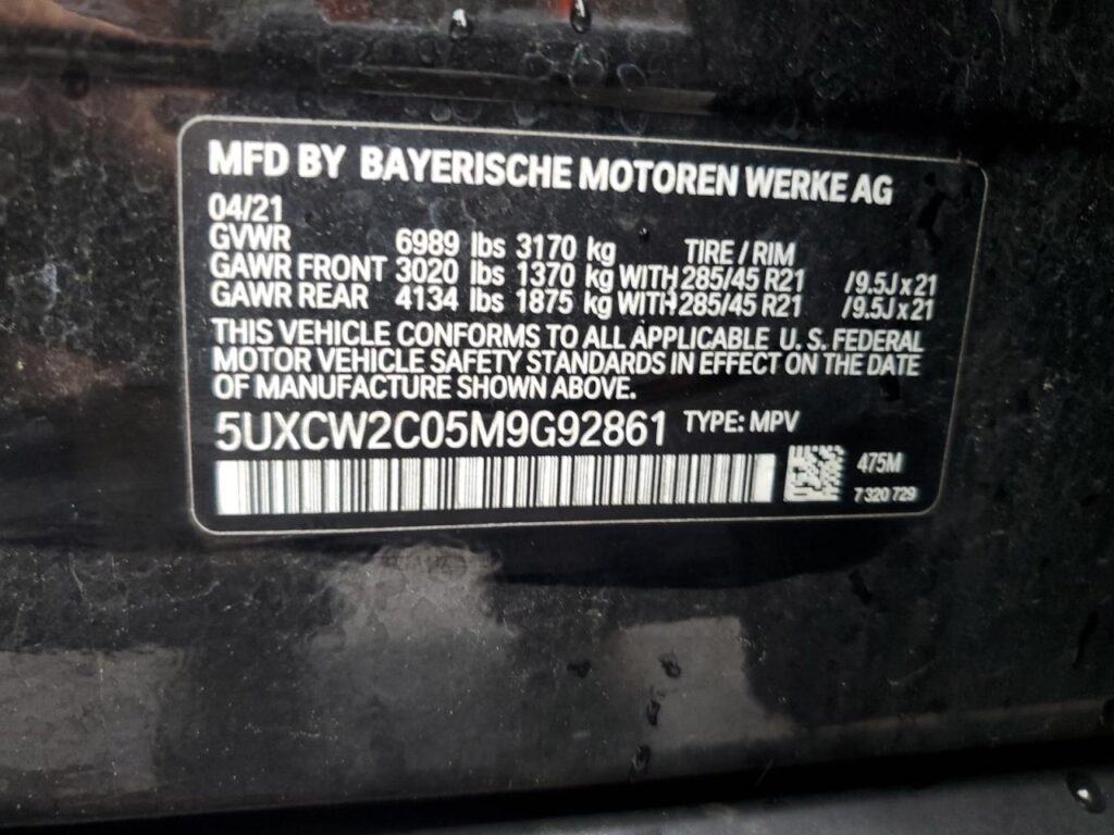 This 2021 BMW X7 (BLACK) comes from a major insurance auction in the USA or Canada. All information on this page is linked to the vehicle’s VIN (5UXCW2C05M9G92861), which helps confirm where the car was listed and what condition it was in at the time of sale.