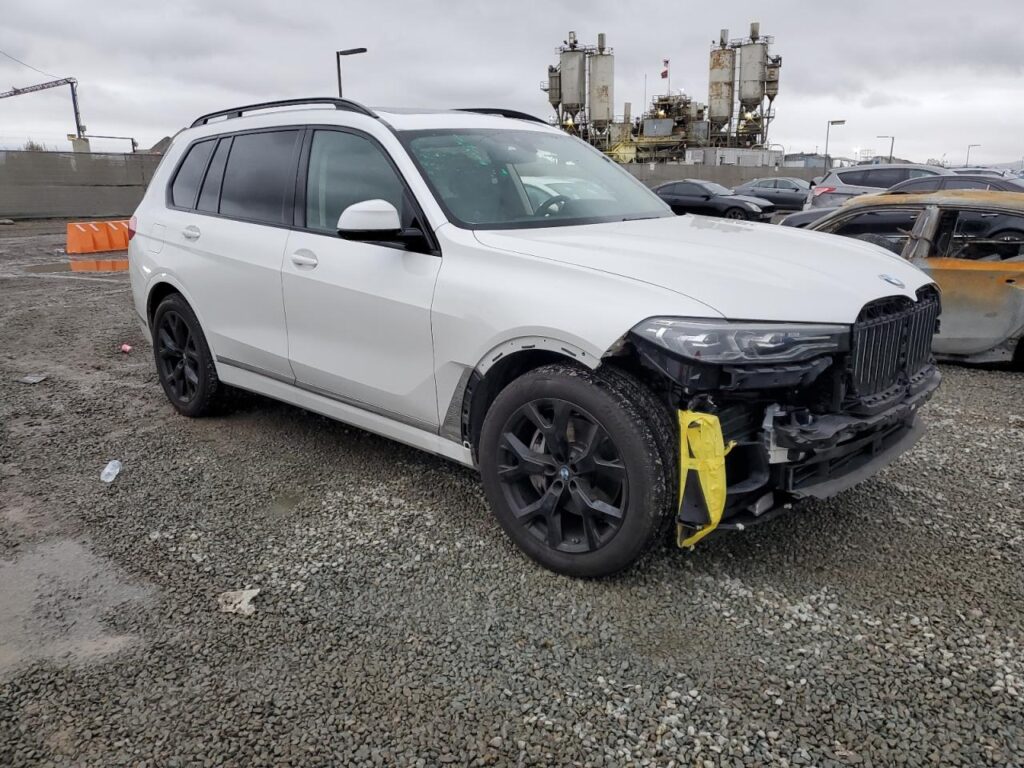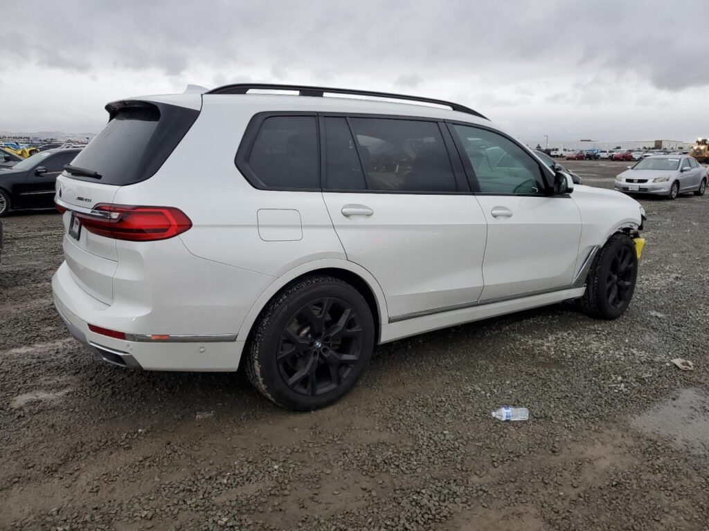 This 2021 BMW X7 (White) is equipped with an engine designed to balance performance and efficiency. According to the auction listing, the vehicle had 54,353 miles at the time of sale.