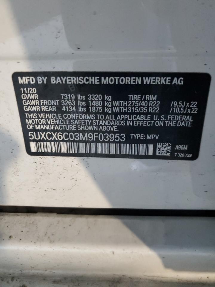 This 2021 BMW X7 (WHITE) comes from a major insurance auction in the USA or Canada. All information on this page is linked to the vehicle’s VIN (5UXCX6C03M9F03953), which helps confirm where the car was listed and what condition it was in at the time of sale.