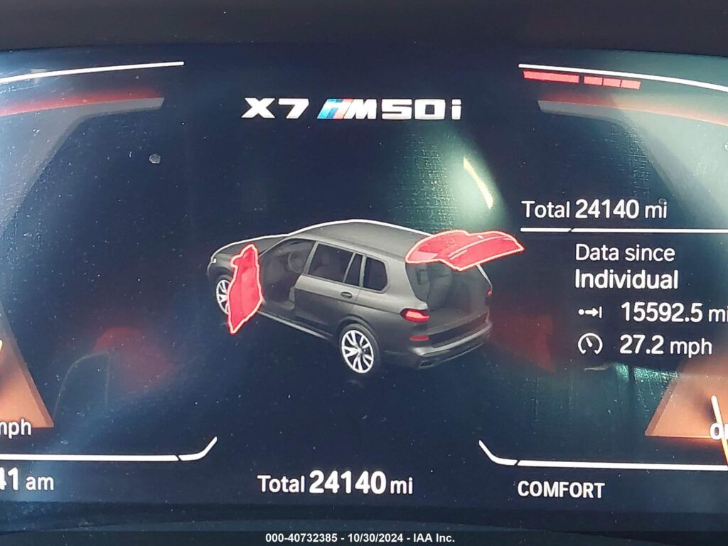 This 2021 BMW X7 (Black) is equipped with an engine designed to balance performance and efficiency. According to the auction listing, the vehicle had 24,140 miles at the time of sale.
