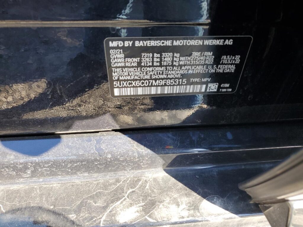 This 2021 BMW X7 (BLUE) comes from a major insurance auction in the USA or Canada. All information on this page is linked to the vehicle’s VIN (5UXCX6C07M9F85315), which helps confirm where the car was listed and what condition it was in at the time of sale.