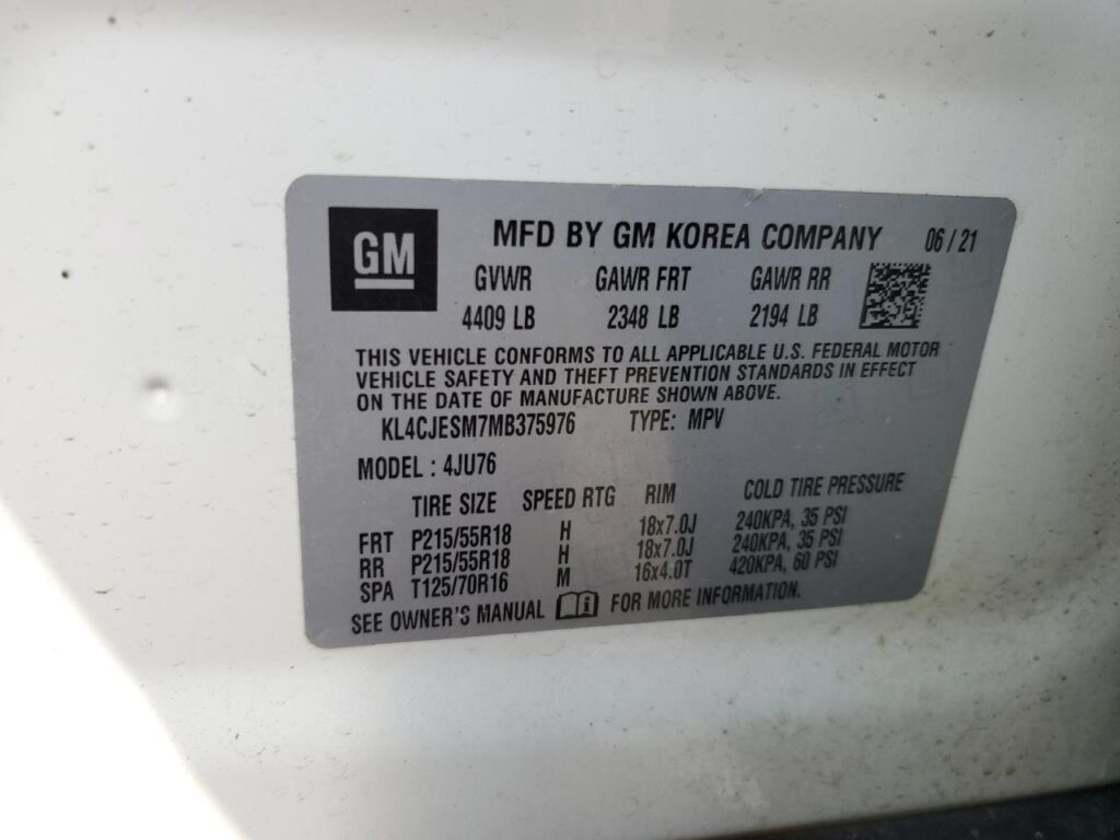 This 2021 Buick Encore (White) comes from a major insurance auction in the USA or Canada. All information on this page is linked to the vehicle’s VIN (KL4CJESM7MB375976), which helps confirm where the car was listed and what condition it was in at the time of sale.