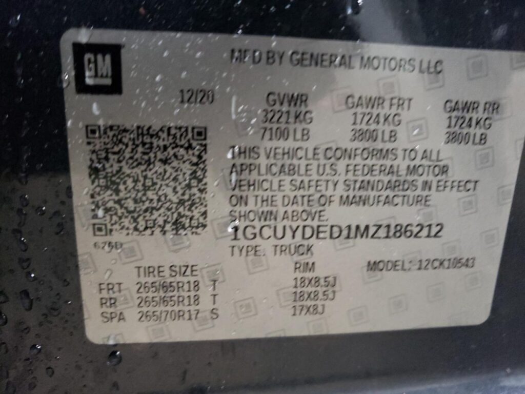 | VIN Number | 1GCUYDED1MZ186212 |