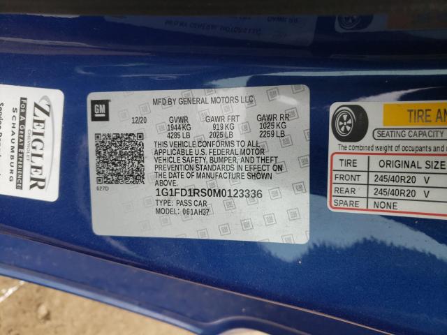This 2021 CHEVROLET CAMARO (BLUE) comes from a major insurance auction in the USA or Canada. All information on this page is linked to the vehicle’s VIN (1G1FD1RS0M0123336), which helps confirm where the car was listed and what condition it was in at the time of sale.