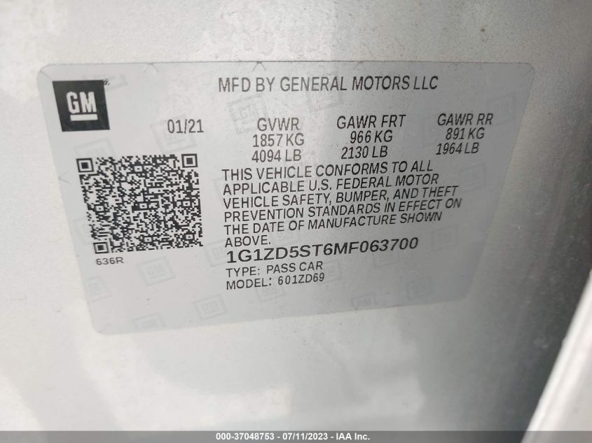 2021 CHEVROLET MALIBU – 1G1ZD5ST6MF063700