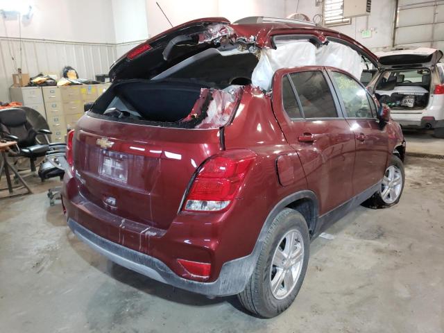 This 2021 Chevrolet Trax (Red) is equipped with an engine designed to balance performance and efficiency. According to the auction listing, the vehicle had 4,316 miles at the time of sale.