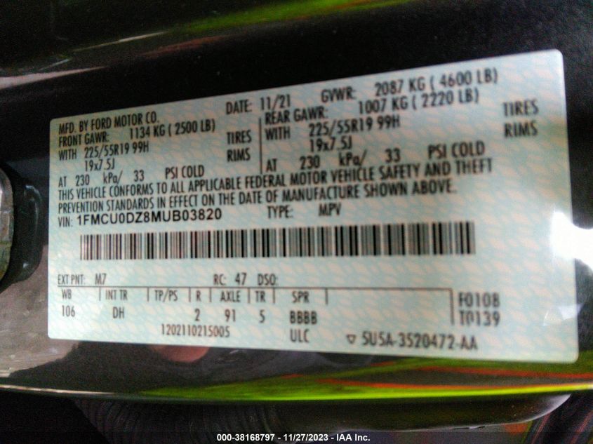 | VIN Number | 1FMCU0DZ8MUB03820 |