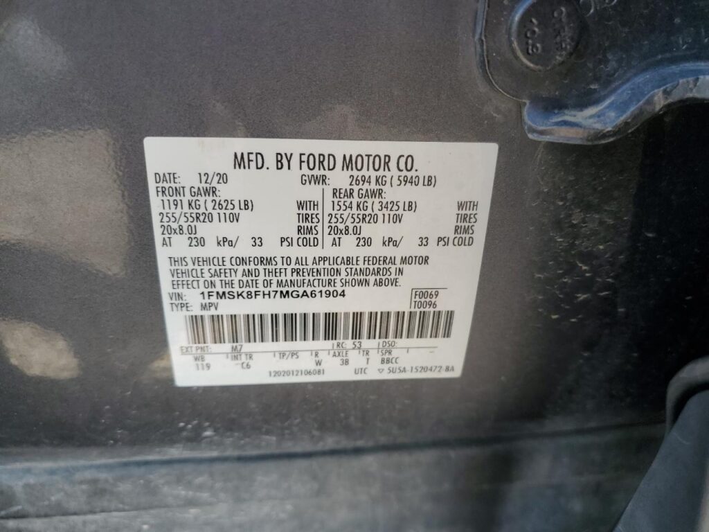 VIN Number1FMSK8FH7MGA61904