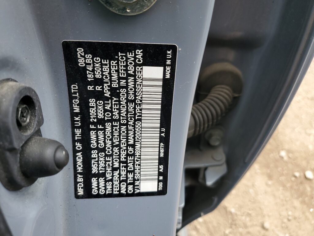 This 2021 Honda Civic (Blue) comes from a major insurance auction in the USA or Canada. All information on this page is linked to the vehicle’s VIN (SHHFK7H69MU200550), which helps confirm where the car was listed and what condition it was in at the time of sale.