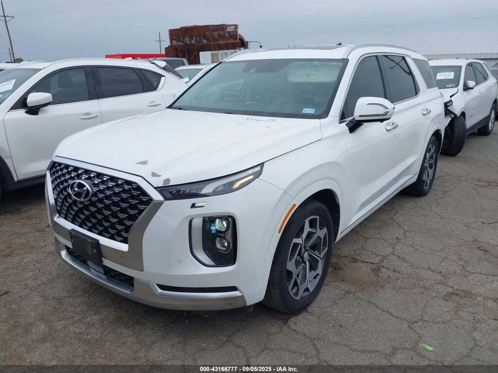 This 2021 Hyundai Palisade (White) is equipped with an engine designed to balance performance and efficiency. According to the auction listing, the vehicle had 42,297 miles at the time of sale.