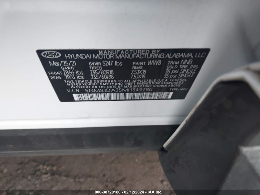 2021 Hyundai Santa Fe – 5NMS1DAJ5MH349780
