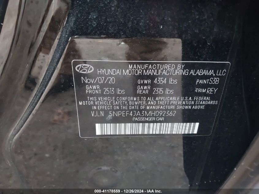 2021 HYUNDAI SONATA – 5NPEF4JA3MH092362