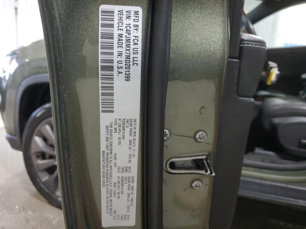 This 2021 Jeep Cherokee (Green) comes from a major insurance auction in the USA or Canada. All information on this page is linked to the vehicle’s VIN (1C4PJMMX7MD201399), which helps confirm where the car was listed and what condition it was in at the time of sale.