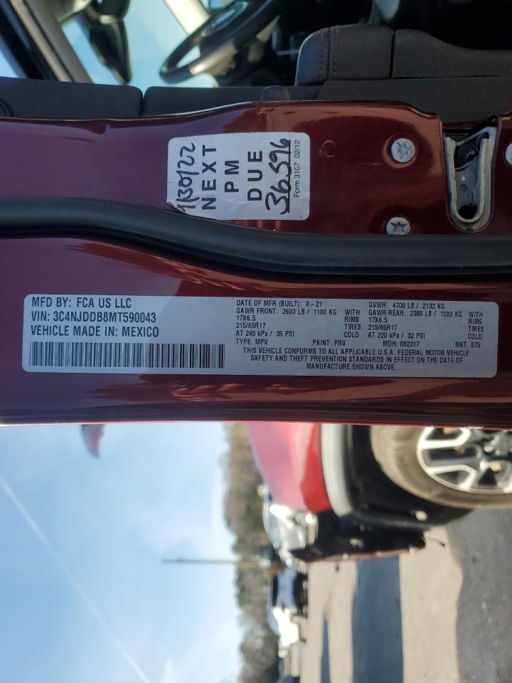 This 2021 Jeep Compass (Red) comes from a major insurance auction in the USA or Canada. All information on this page is linked to the vehicle’s VIN (3C4NJDDB8MT590043), which helps confirm where the car was listed and what condition it was in at the time of sale.