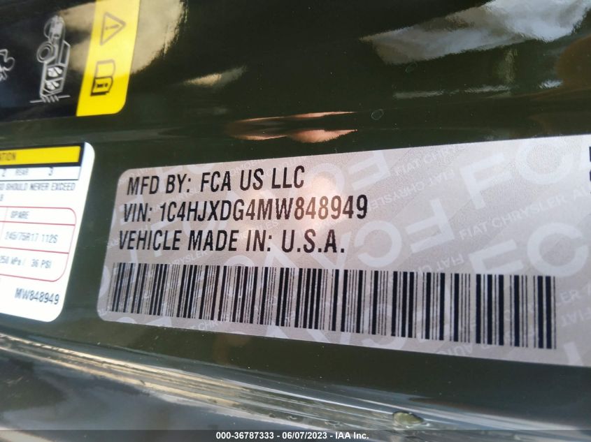 2021 JEEP WRANGLER – 1C4HJXDG4MW848949
