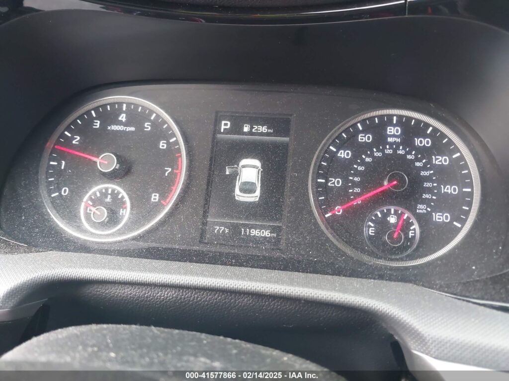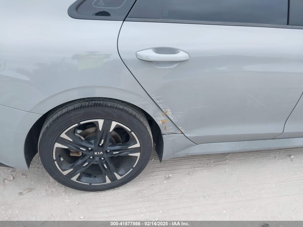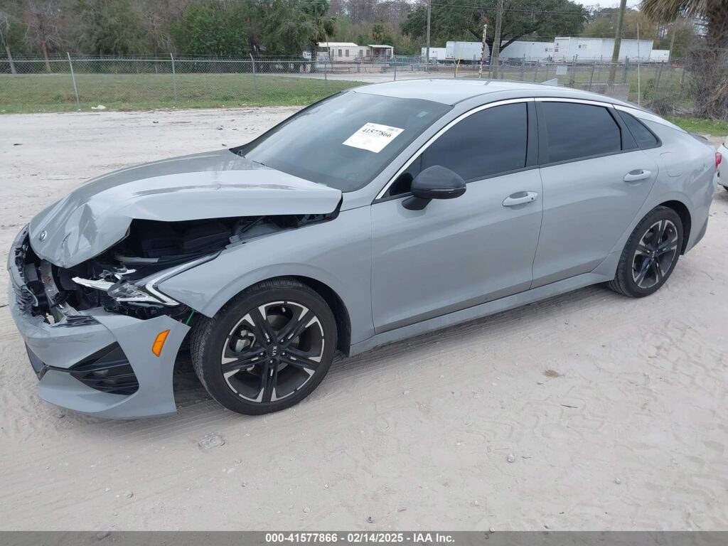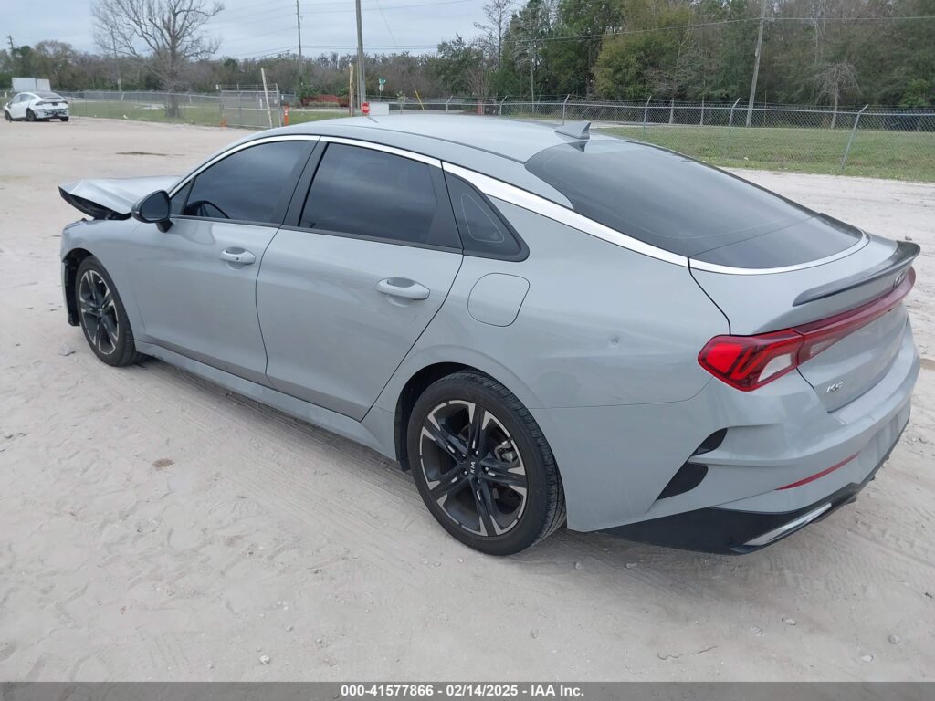 This 2021 Kia K5 (Grey) is equipped with an engine designed to balance performance and efficiency. According to the auction listing, the vehicle had 119,606 miles at the time of sale.