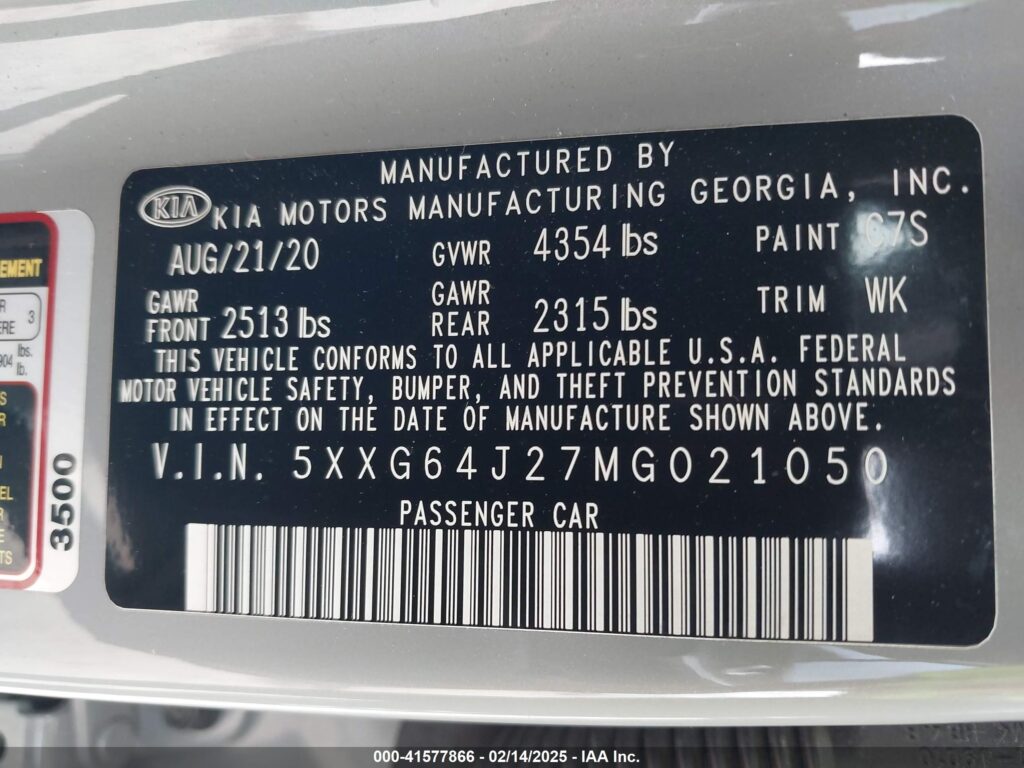 2021 Kia K5 – 5XXG64J27MG021050