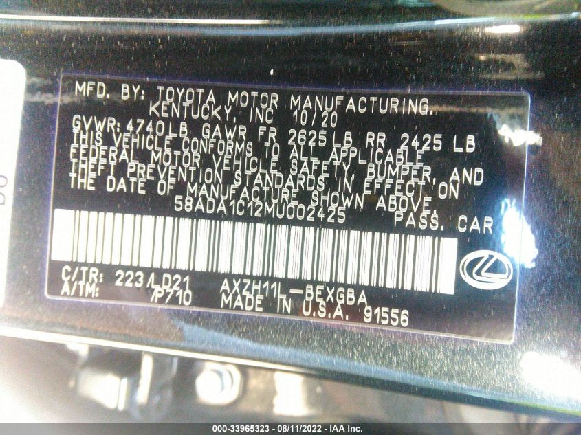 2021 Lexus ES 300h – 58ADA1C12MU002425