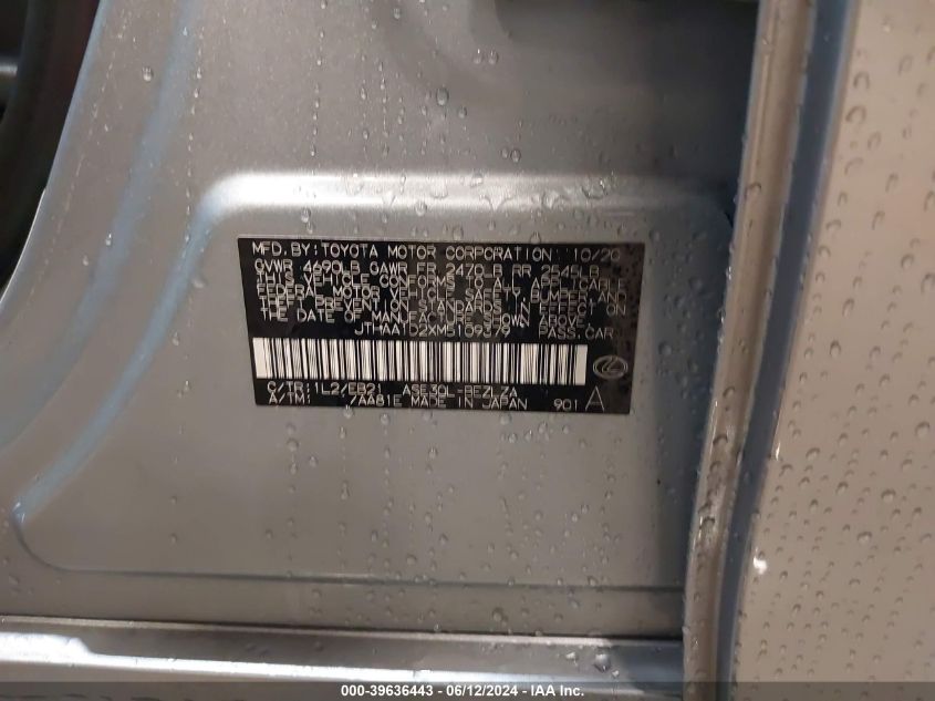 This 2021 LEXUS IS (Unknown Color) comes from a major insurance auction in the USA or Canada. All information on this page is linked to the vehicle’s VIN (JTHAA1D2XM5109379), which helps confirm where the car was listed and what condition it was in at the time of sale.