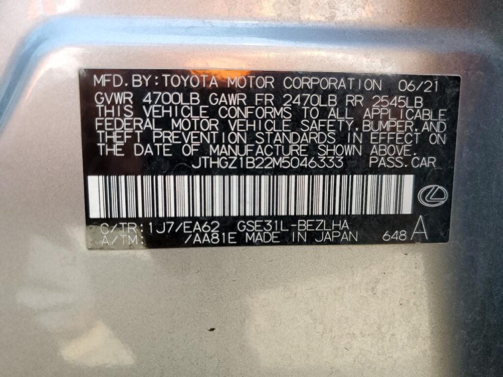 VIN: JTHGZ1B22M5046333