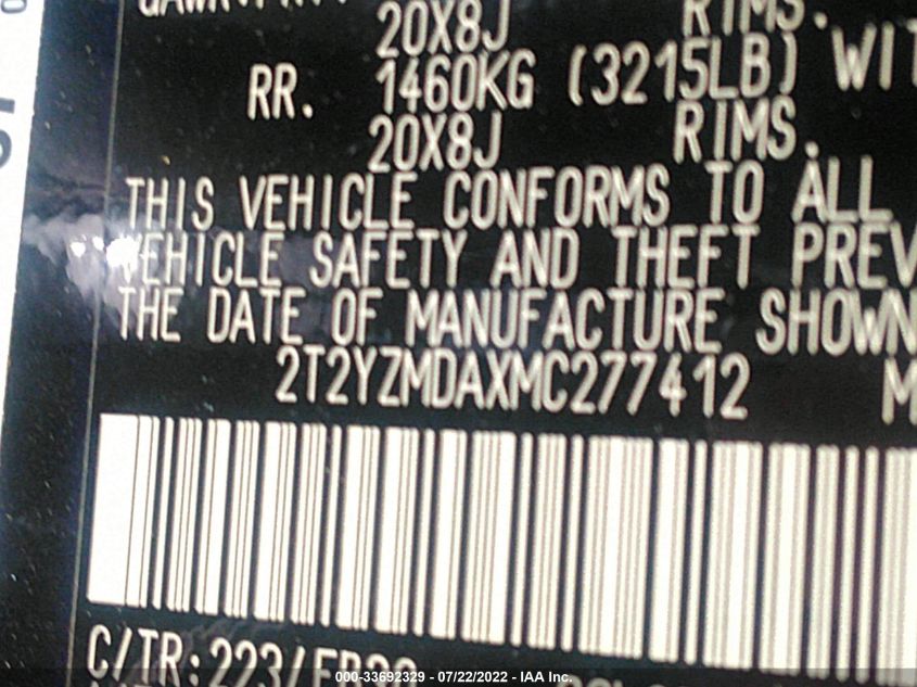 | VIN Number | 2T2YZMDAXMC277412 |