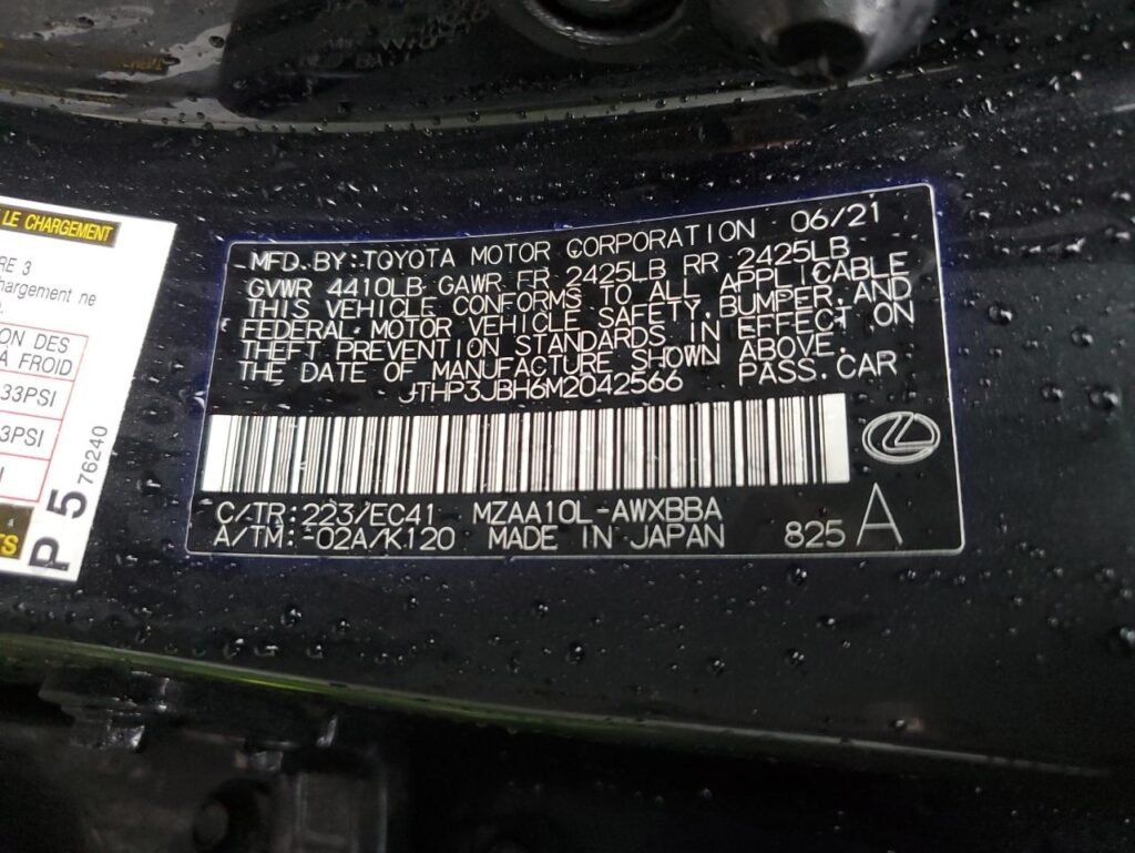 VIN: JTHP3JBH6M2042566