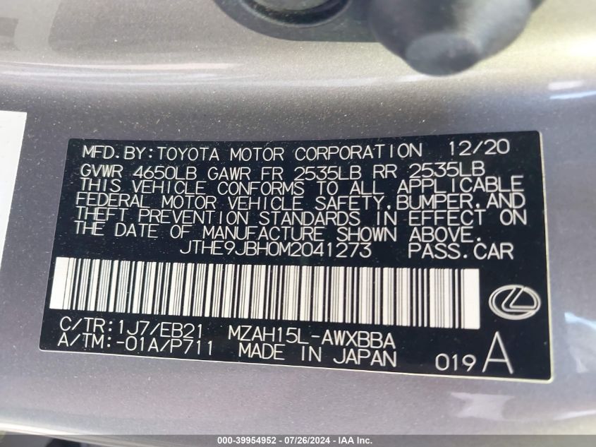 | VIN Number | JTHE9JBH0M2041273 |