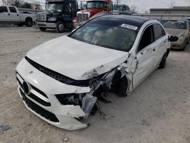 This 2021 Mercedes-Benz A-Class (White) is equipped with an engine designed to balance performance and efficiency. According to the auction listing, the vehicle had 77,825 miles at the time of sale.