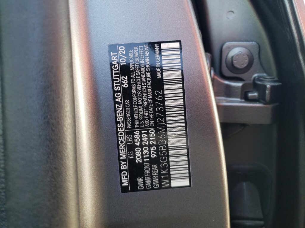 | VIN Number | W1K3G5BB6MJ273762 |
