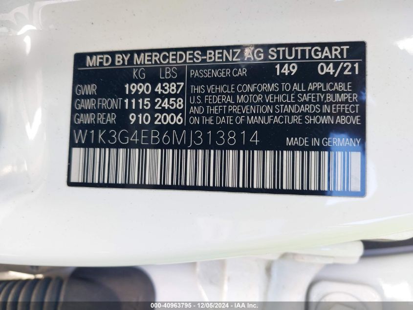 | VIN Number | W1K3G4EB6MJ313814 |