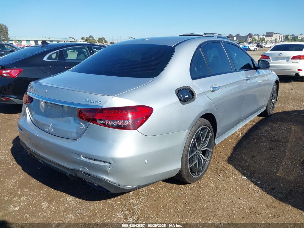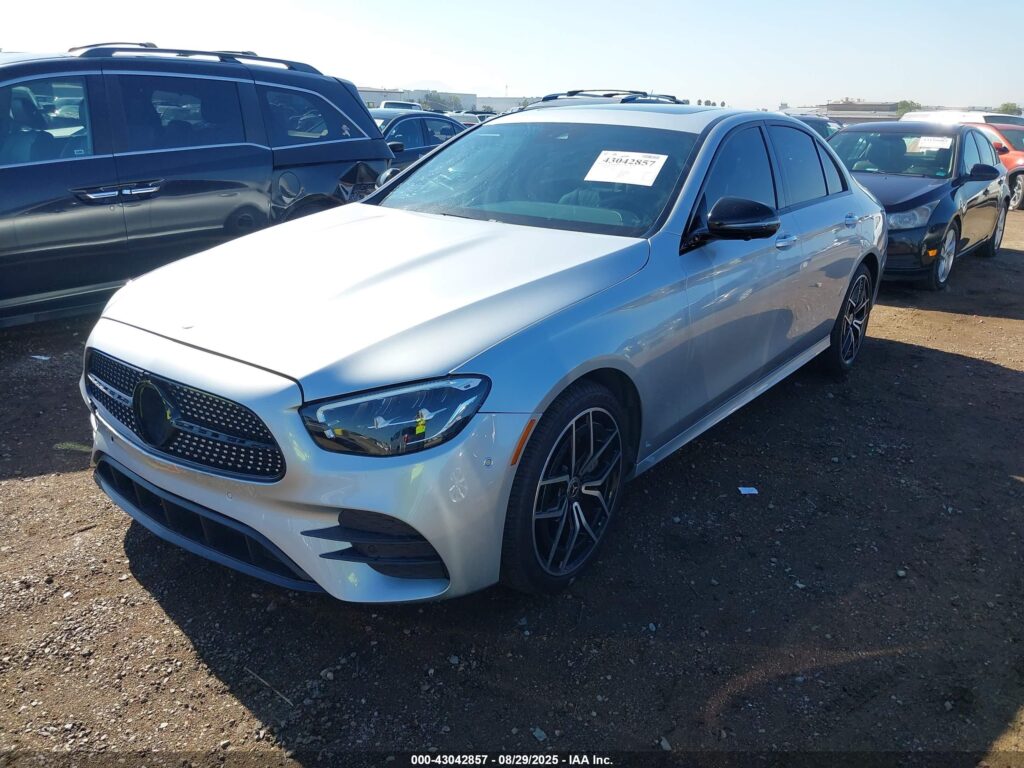 This 2021 Mercedes-Benz E-Class (Silver) is equipped with an engine designed to balance performance and efficiency. According to the auction listing, the vehicle had 57,133 miles at the time of sale.