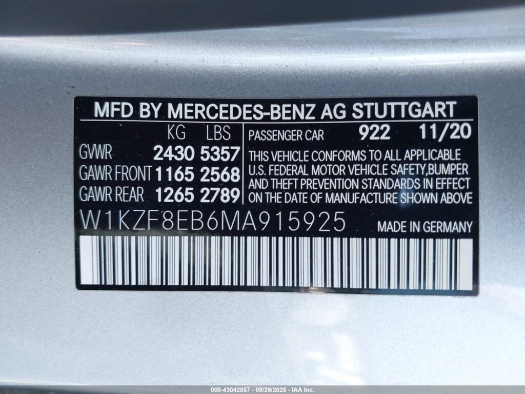 | VIN Number | W1KZF8EB6MA915925 |