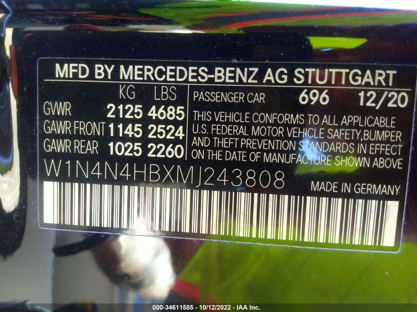 | VIN Number | W1N4N4HBXMJ243808 |