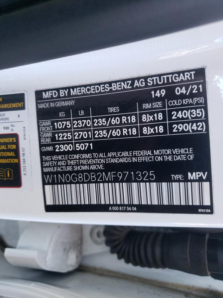 This 2021 MERCEDES-BENZ GLC-CLASS (WHITE) comes from a major insurance auction in the USA or Canada. All information on this page is linked to the vehicle’s VIN (W1N0G8DB2MF971325), which helps confirm where the car was listed and what condition it was in at the time of sale.