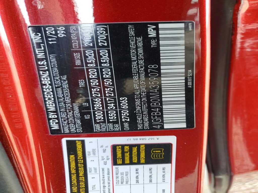 This 2021 Mercedes-Benz GLE-Class (Red) comes from a major insurance auction in the USA or Canada. All information on this page is linked to the vehicle’s VIN (4JGFB4JB0MA359078), which helps confirm where the car was listed and what condition it was in at the time of sale.