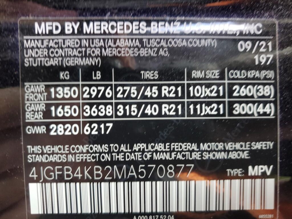 VIN: 4JGFB4KB2MA570877