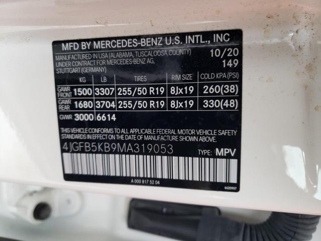 This 2021 Mercedes-Benz GLE-Class (White) comes from a major insurance auction in the USA or Canada. All information on this page is linked to the vehicle’s VIN (4JGFB5KB9MA319053), which helps confirm where the car was listed and what condition it was in at the time of sale.