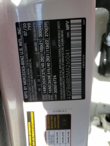 This 2021 Mercedes-Benz GLE-Class (White) comes from a major insurance auction in the USA or Canada. All information on this page is linked to the vehicle’s VIN (4JGFB6BB5MA260041), which helps confirm where the car was listed and what condition it was in at the time of sale.